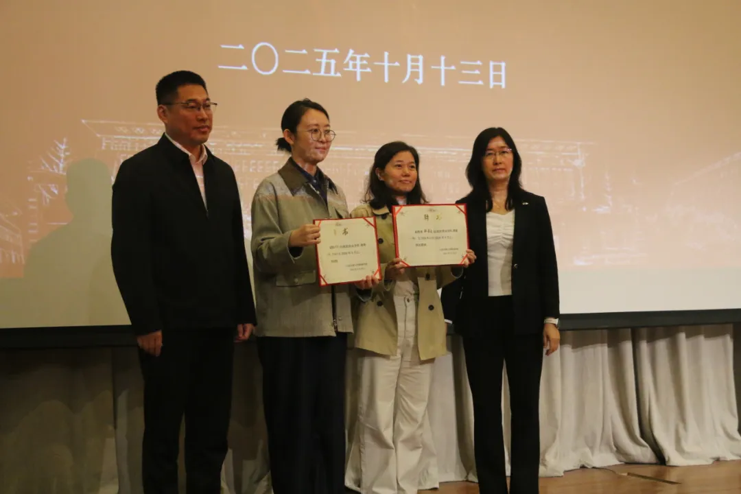 邹雷处长、李旻院长为刘雨涵老师、邵翠莲老师颁发职业导师聘书。