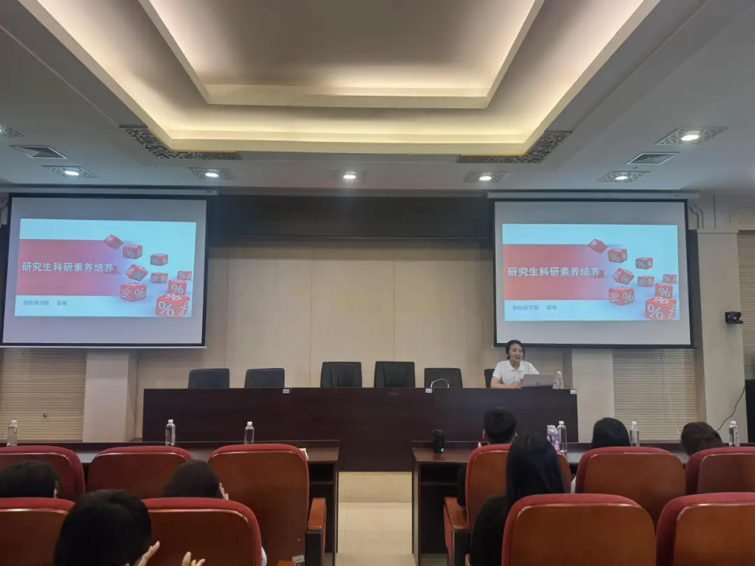 科研素养教育板块由国际商学院副院长邹靖副教授主讲,深入拆解硕士论文的选题思路、写作全流程与学术规范,重点解析 “研究方法选择”“文献综述撰写”“数据处理技巧” 等常见难题及实用应对策略。通过案例分享与思路引导,帮助新生提前厘清科研方向、建立学术思维,为后续的学术探索筑牢根基。