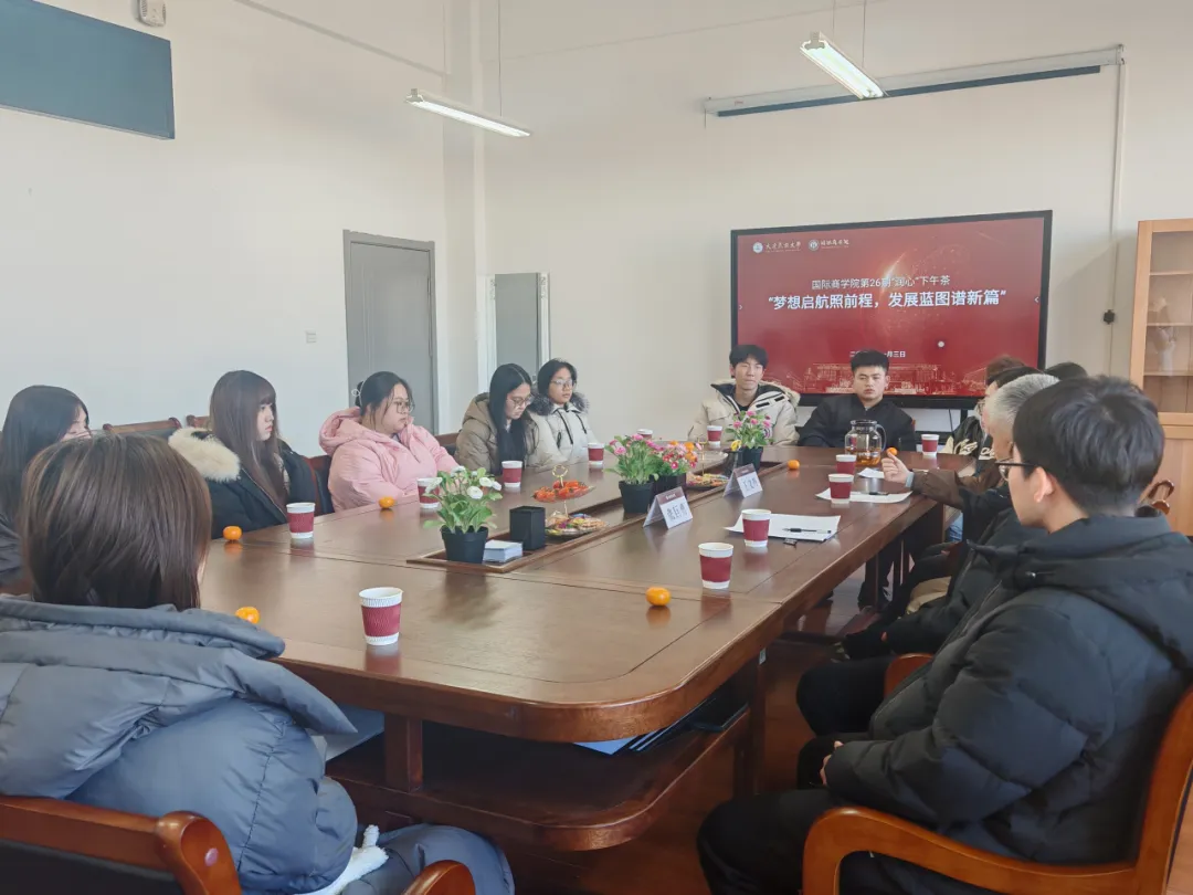 为深入贯彻习近平总书记关于促进高质量充分就业的重要讲话精神,落实教育部关于做好2025届全国普通高校毕业生就业创业工作的相关要求,推动“三全育人”综合改革在学院就业指导服务工作中发挥实效,进一步健全师生就业联络体系,增强就业工作的精准度,2025年1月3日下午,国际商学院于闻道楼512开展以“梦想启航照前程、发展蓝图谱新篇”为主题的“润心”下午茶活动。院长张巨勇、辅导员王义丹及14名大四学生参加。