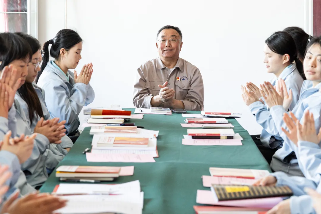 郭明义为师生赠送自传书籍《幸福就这么简单》。郭明义嘱托学院强化志愿服务团队建设,进一步激活高质量发展动能。